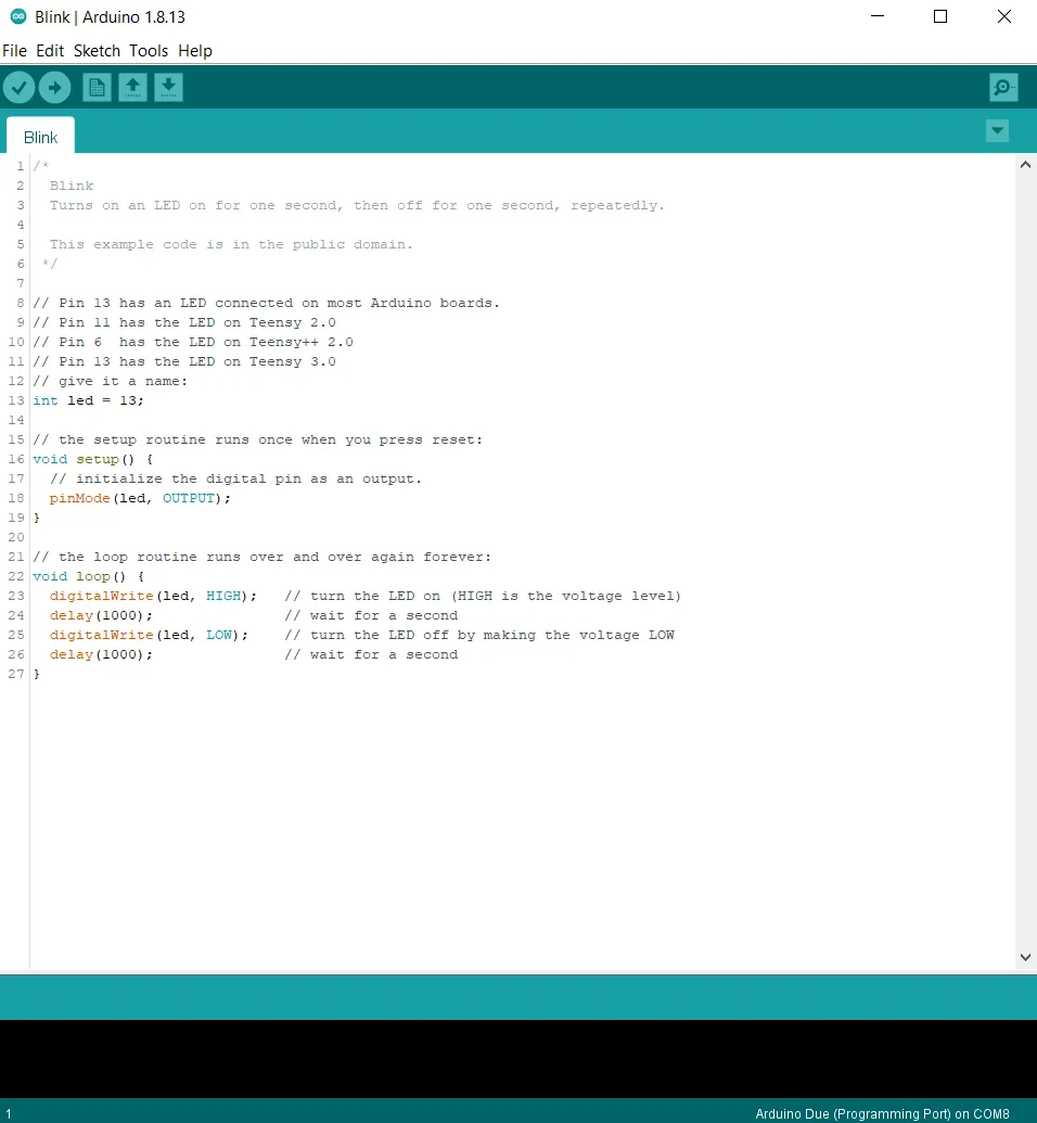 The easiest way to check if the board is working, is to use pre-created example codes. One of them is the blink sketch provided in the Arduino IDE examples.
