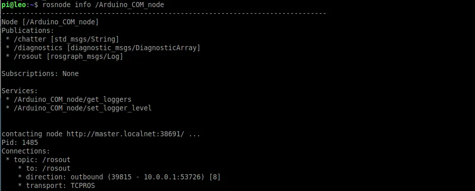You can get more information about your node - eg. what topics it is listening/publishing to. As you can see, /Arduino_COM_node is publishing to /chatter topic