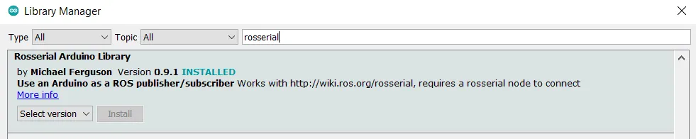 Type rosserial in the search bar and download Rosserial Arduino Library